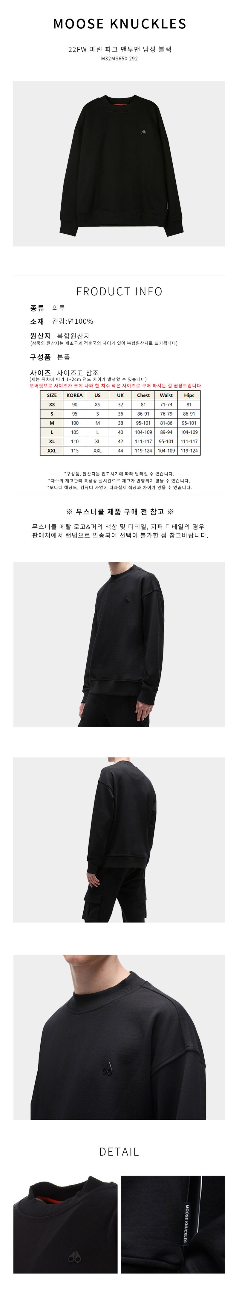 [명품] 무스너클 마린 파크 오버핏 맨투맨 남성 블랙 M32MS650 292