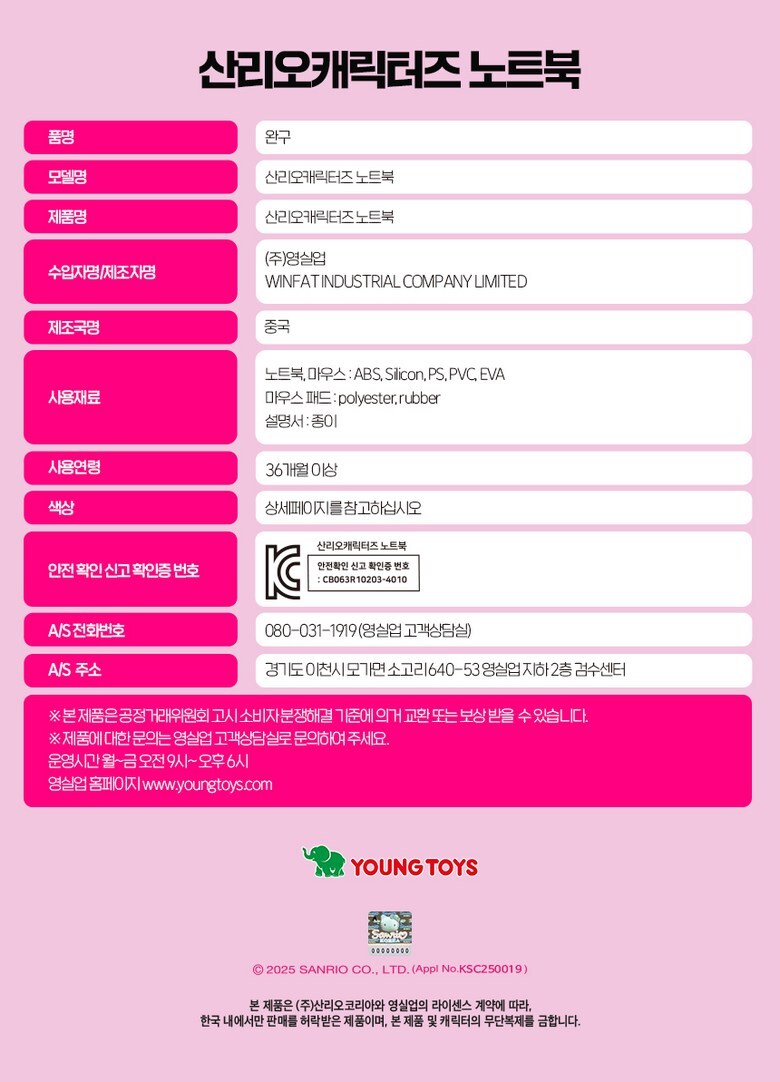 산리오캐릭터즈 노트북 8801198270013