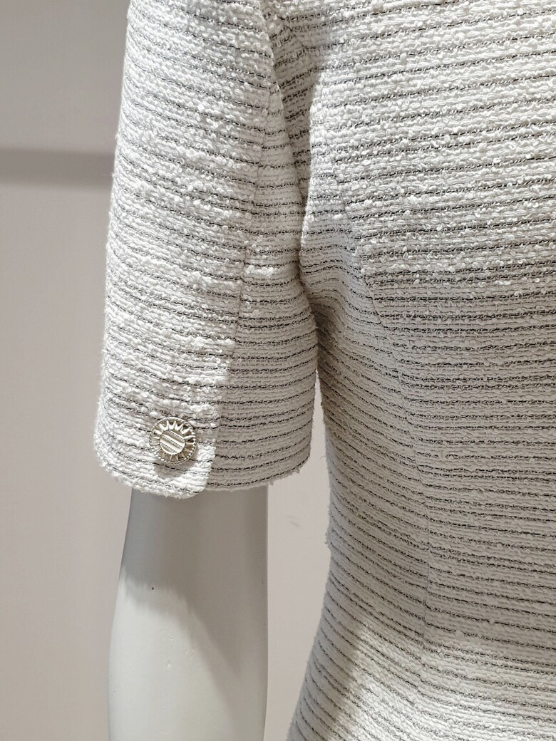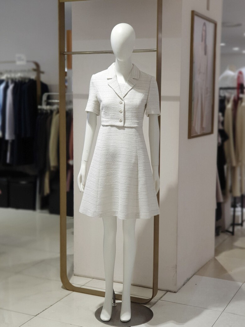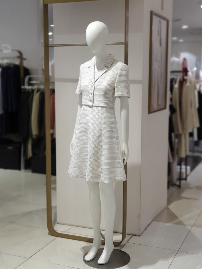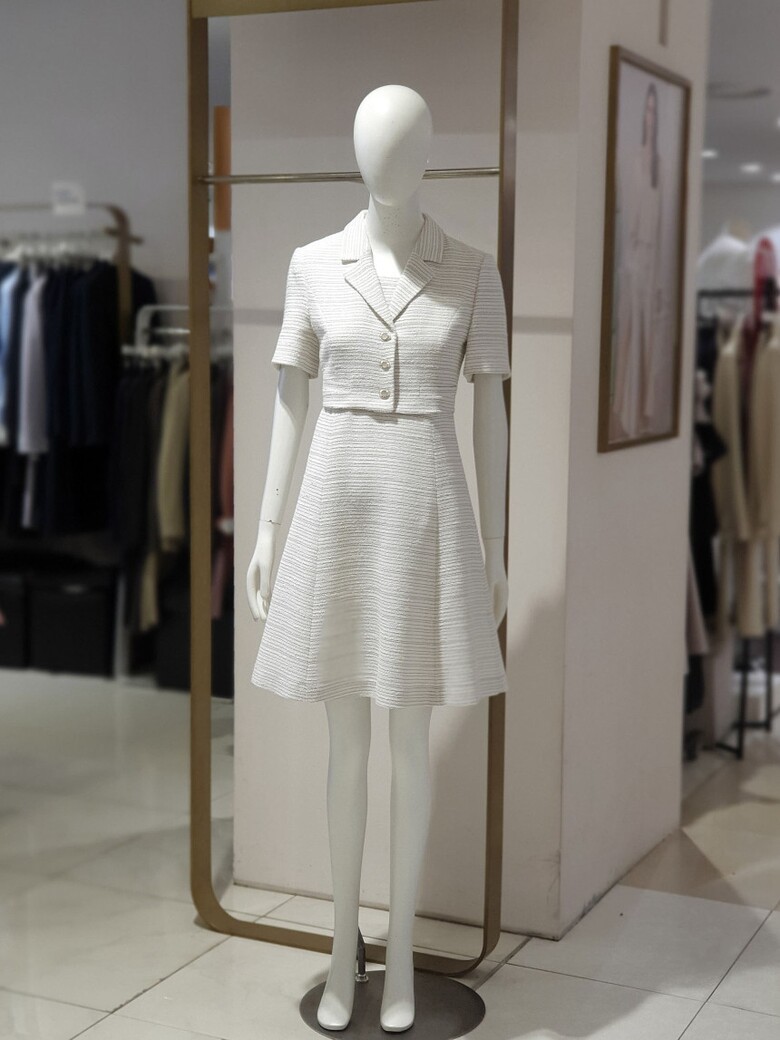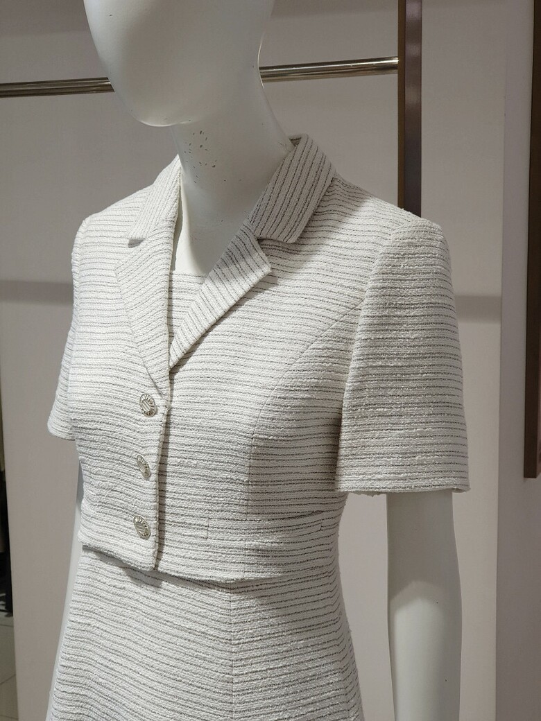 컷아웃으로 크롭 재킷과 스커트 디자인으로 투피스 셋업 연출한 것처럼