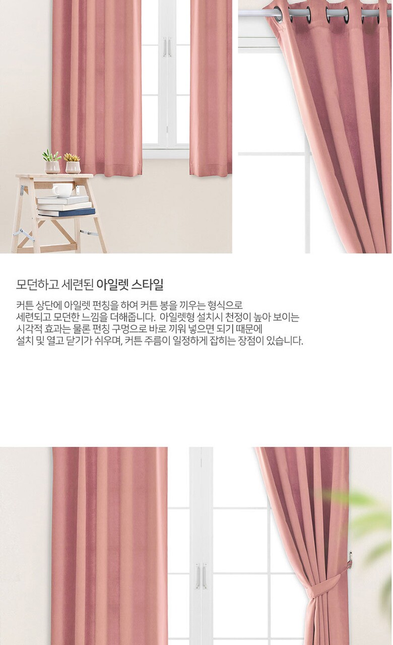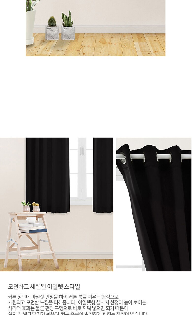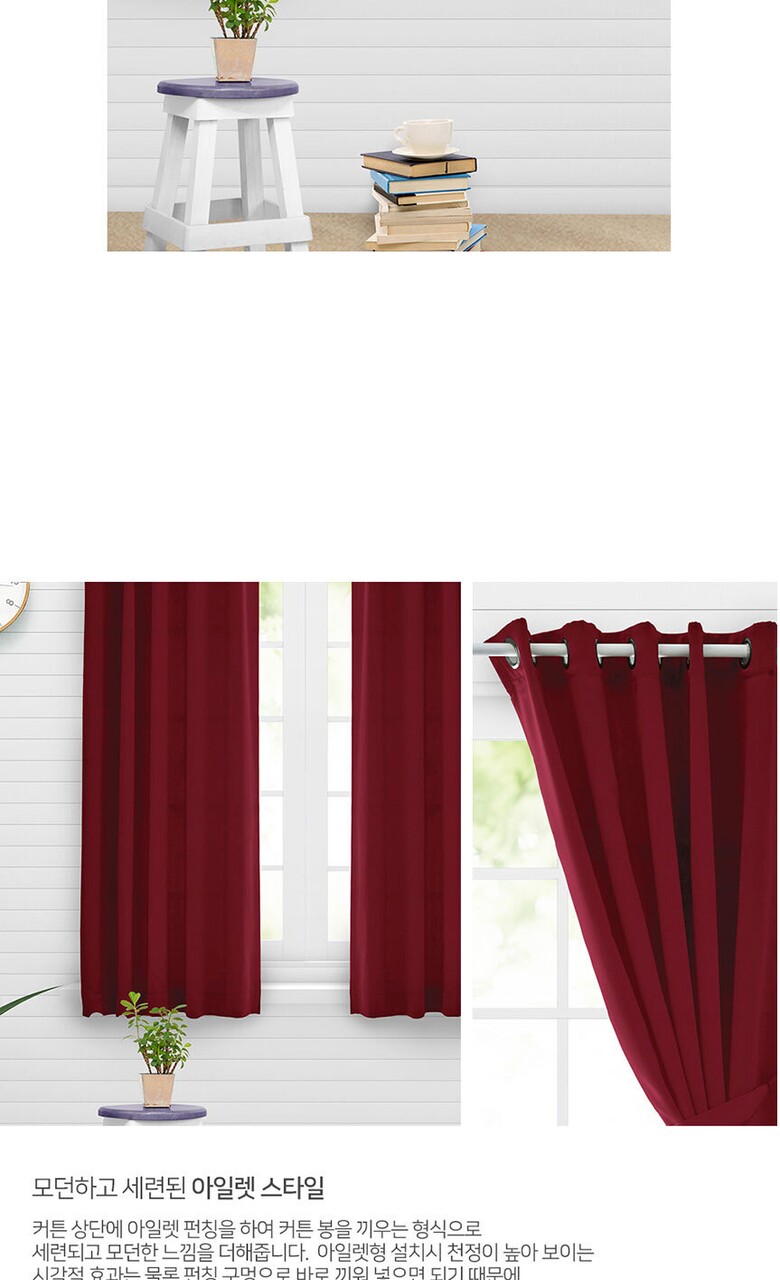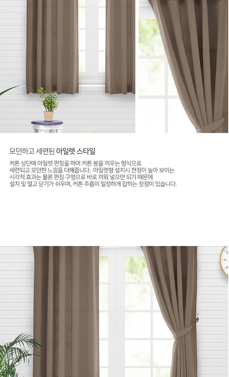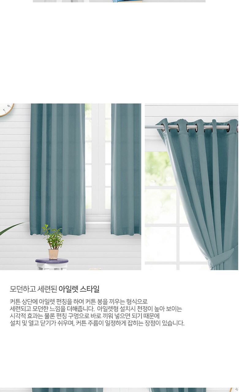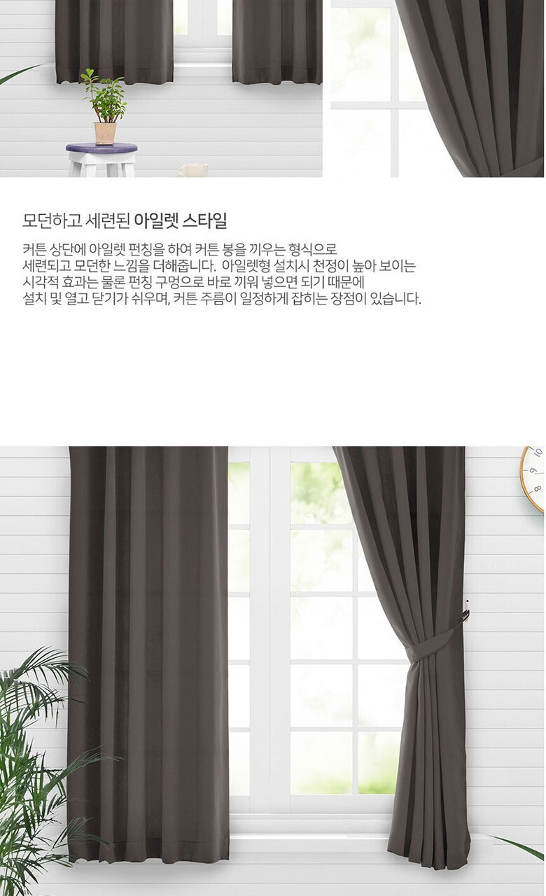 16컬러 아일렛형 3중직 창문형 암막커튼 2장세트 (135x170cm)