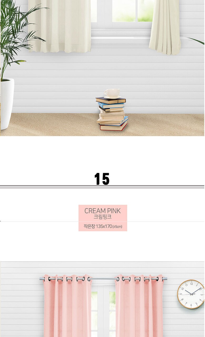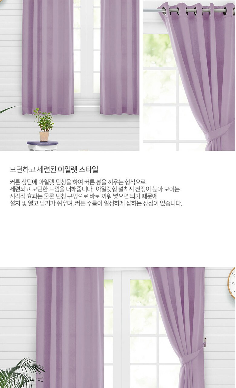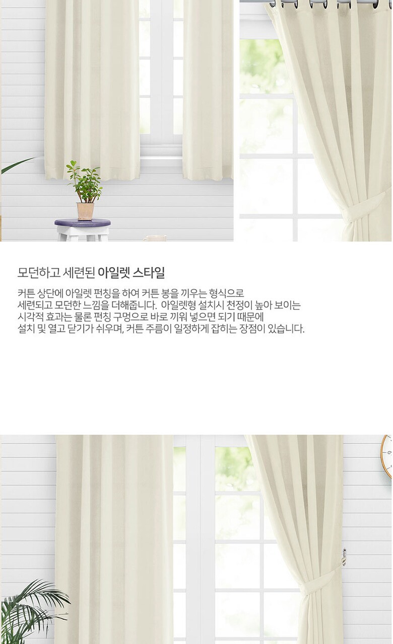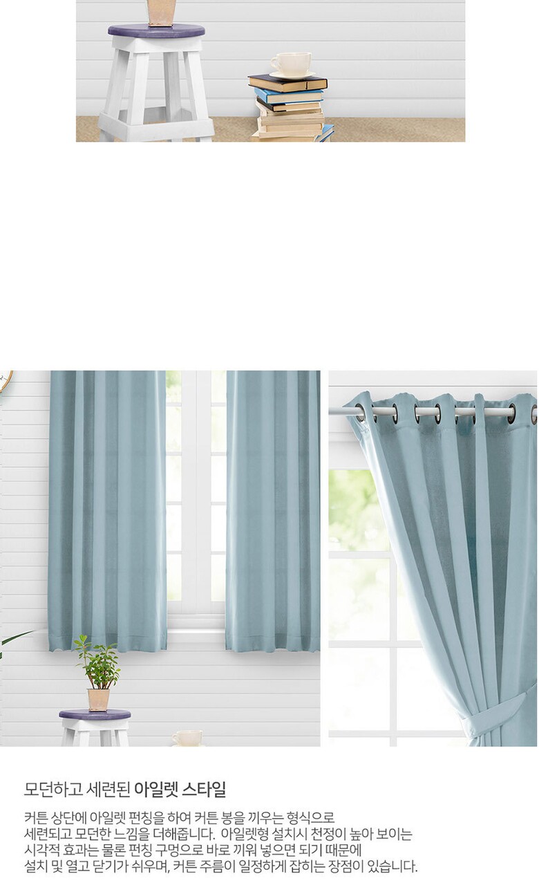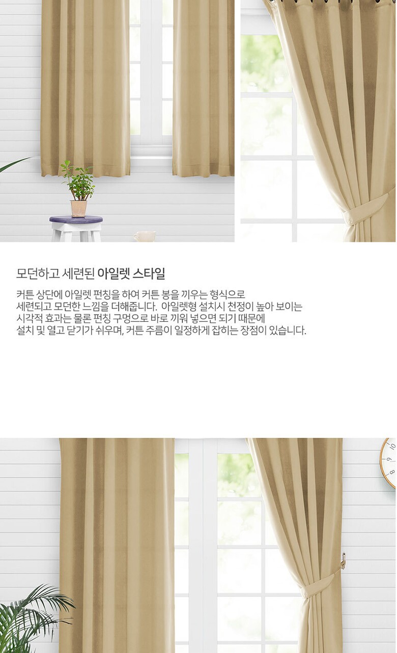 16컬러 아일렛형 3중직 창문형 암막커튼 2장세트 (135x170cm)