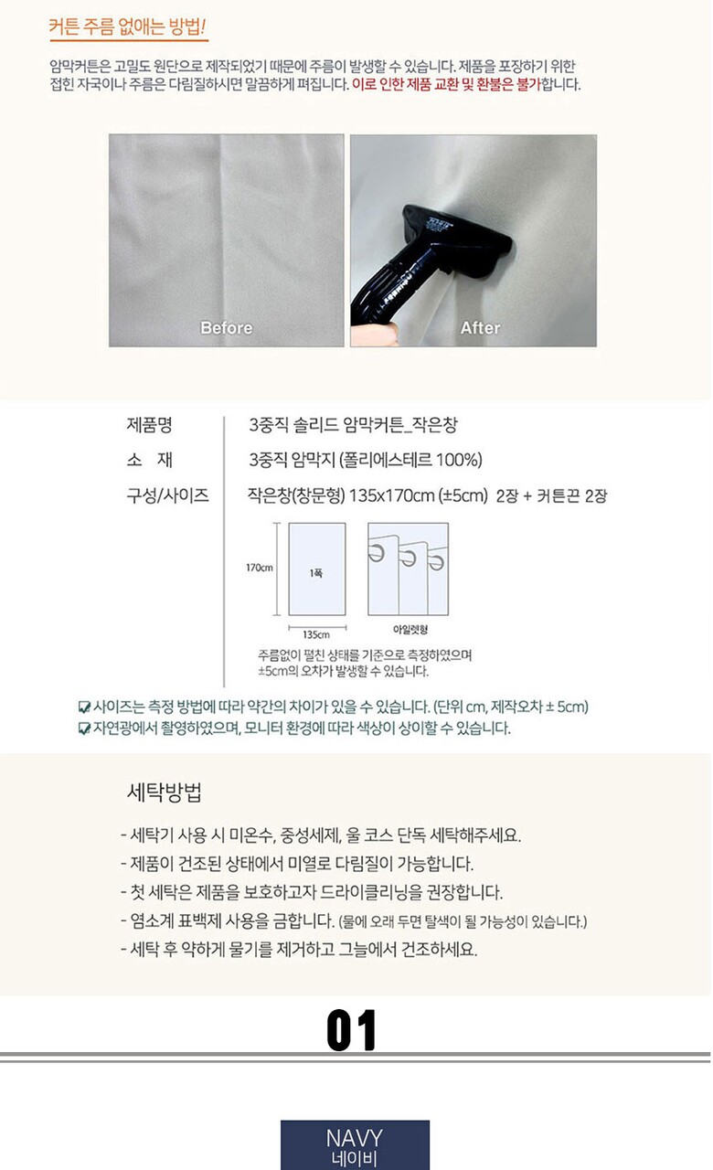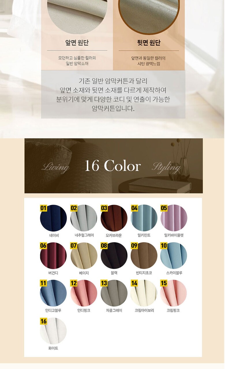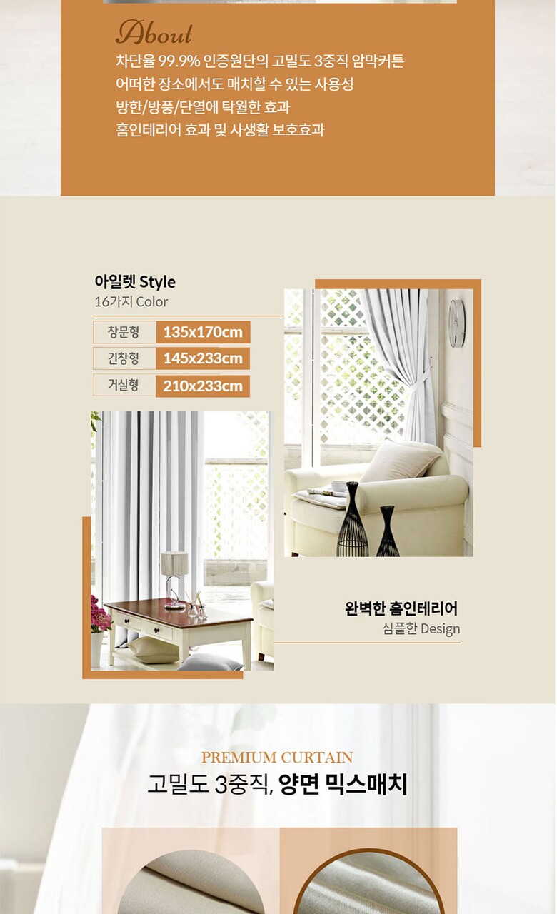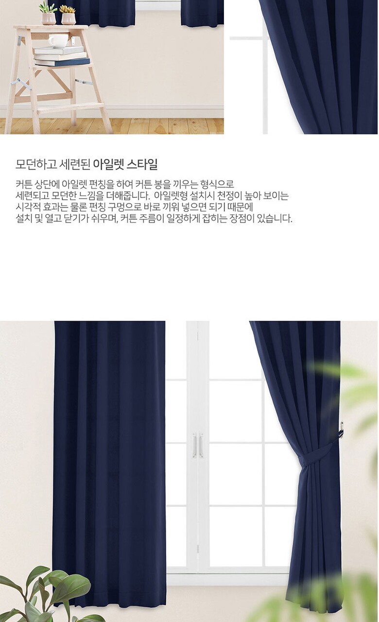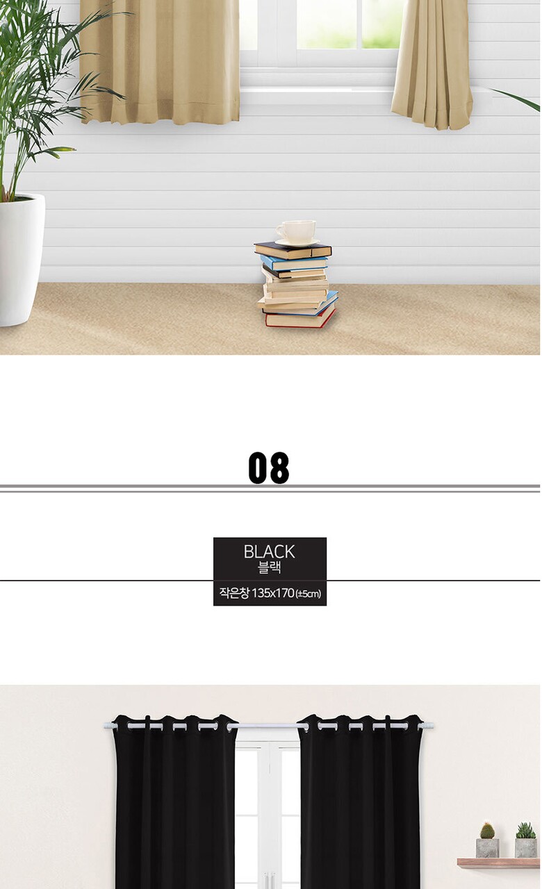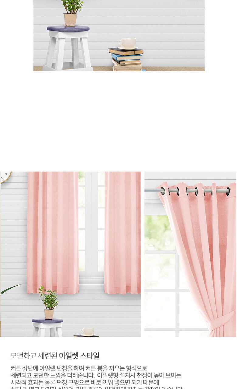 16컬러 아일렛형 3중직 창문형 암막커튼 2장세트 (135x170cm)