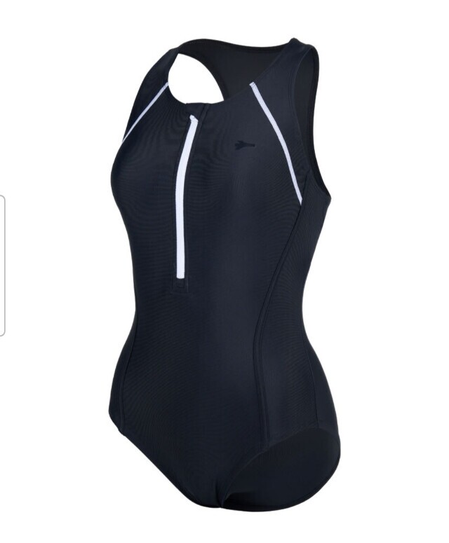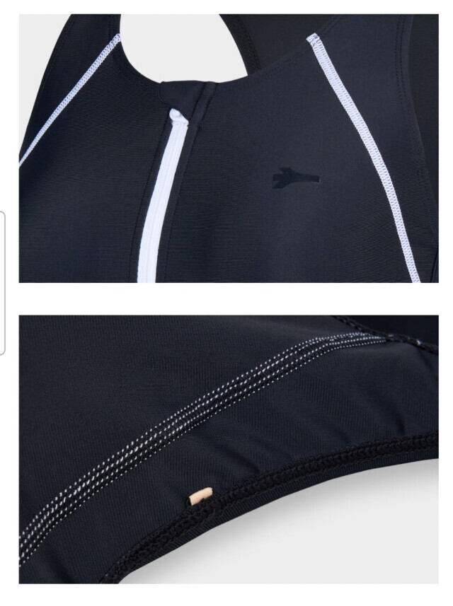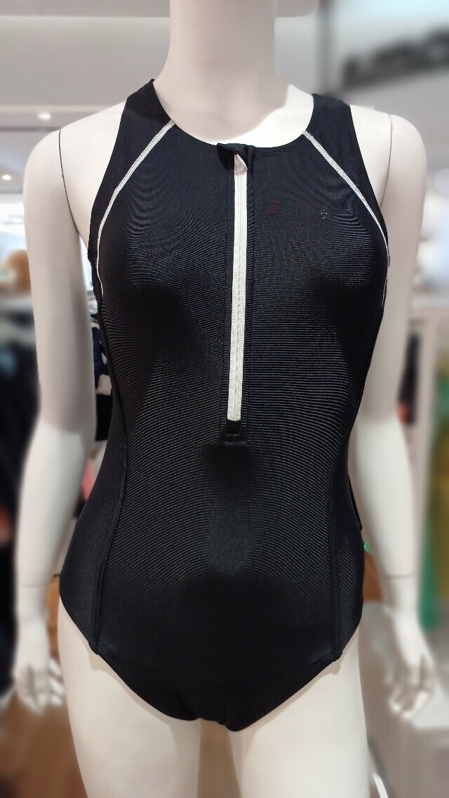 앞 지퍼 포인트가 있어 착용하기 편하며 부드러운 터치감과 탄탄한 착용감이 좋으며 Y백 라인의 여성 실내수영복입니다.