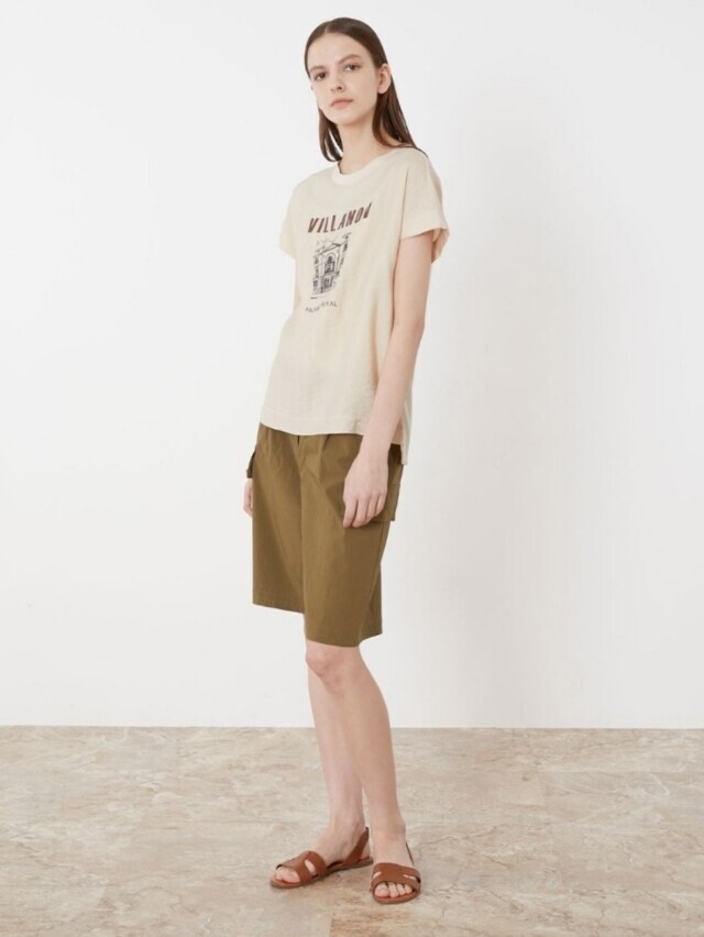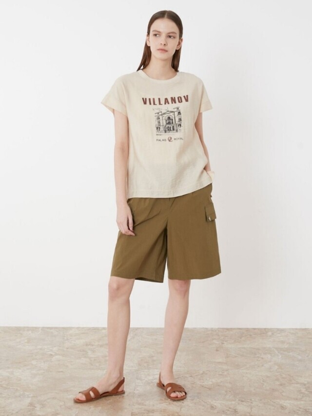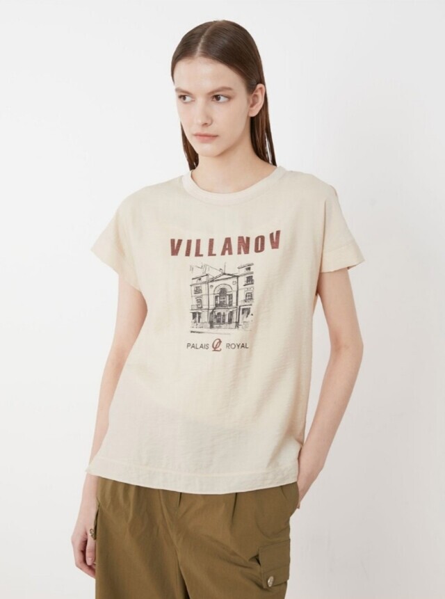 [올리비아로렌]나염 우븐 글리터 프린트 티셔츠VOCAS3M6126