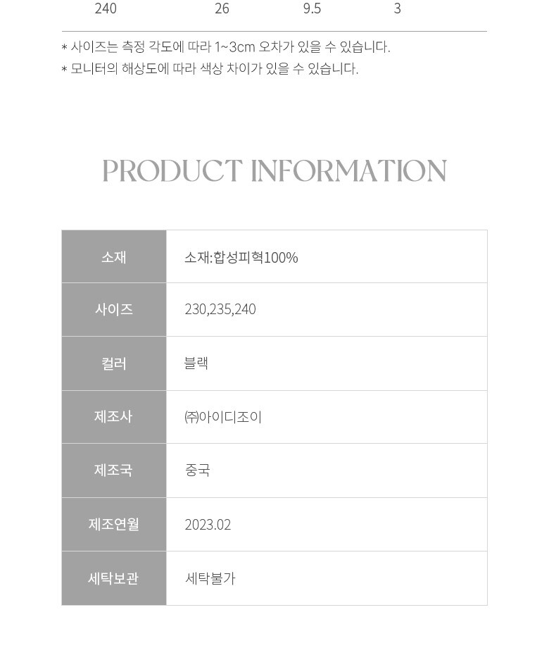 1. 제품 소재 (운동화인 경우에는 겉감, 안감을 구분하여 표시) | 상세페이지 참조 |