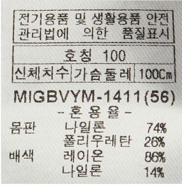 몸판:나일론 74%|*|폴리우레탄 26% / 배색:나일론 14%|*|레이온 86%