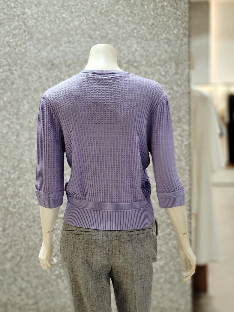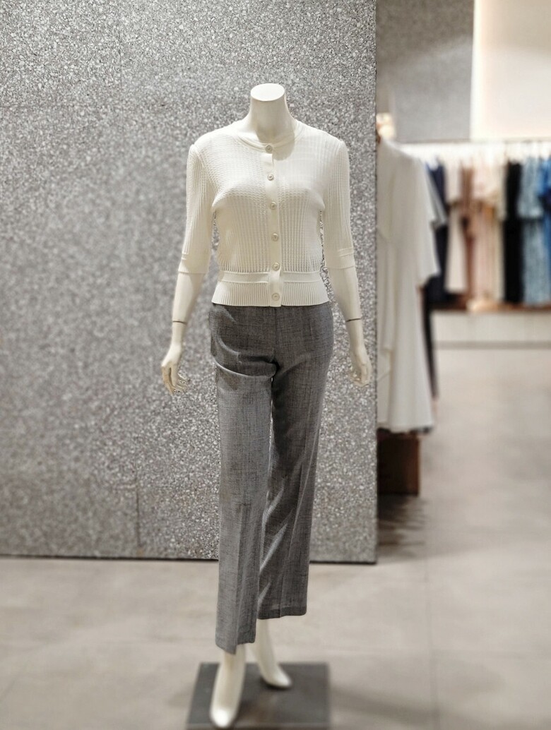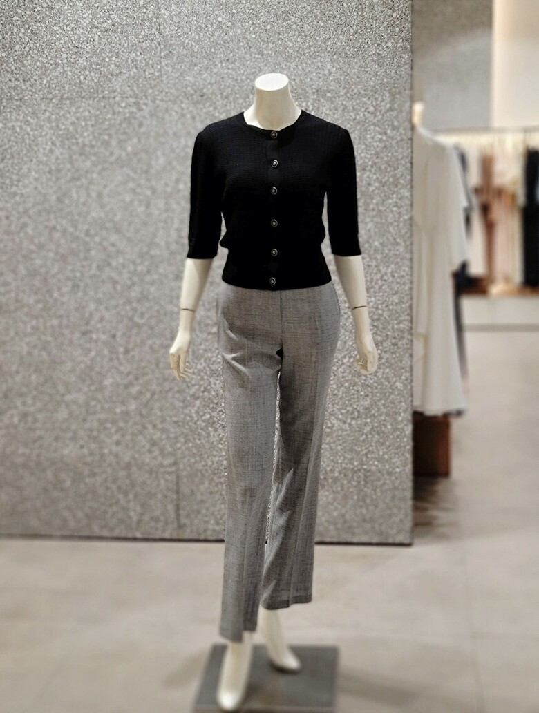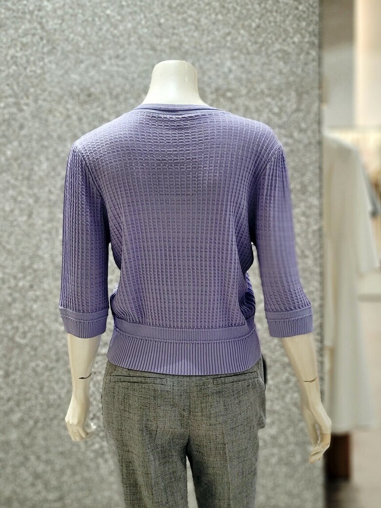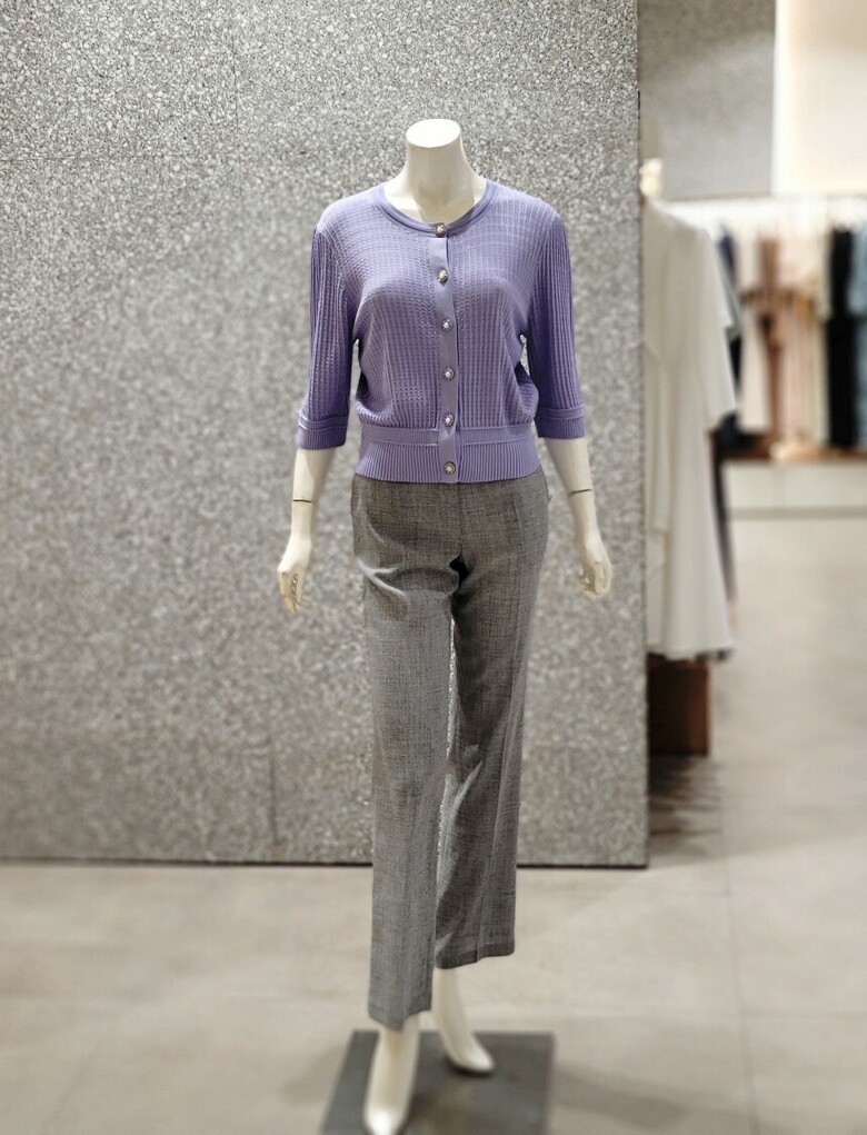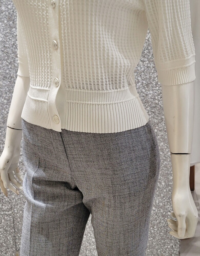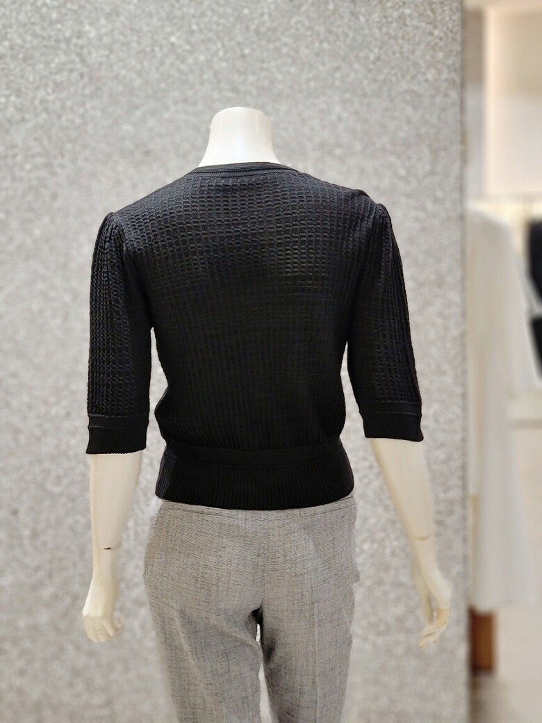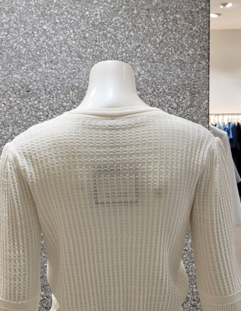 니트 짜임이 돋보이며 여밈 라인 쥬얼 버튼 포인트