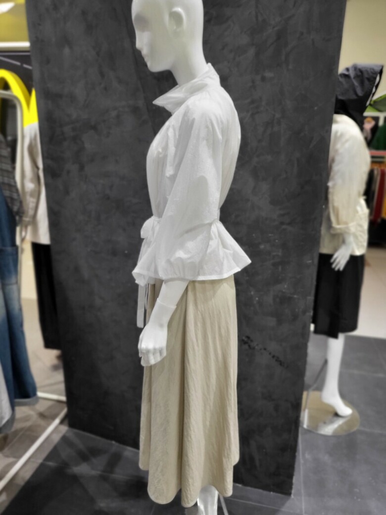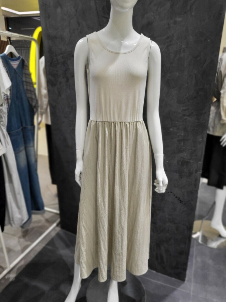 원피스는 밑으로 갈수록 넓어지는 플레어 실루엣으로 페미닌한 무드를 더하며,