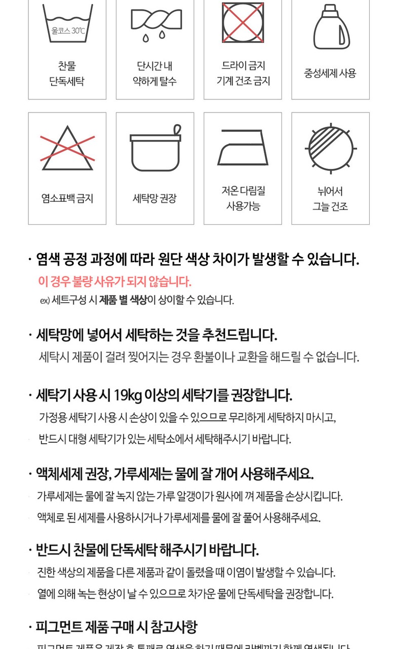 7. 세탁방법 및 취급시 주의사항 | (상품기본정보) 원산지 |