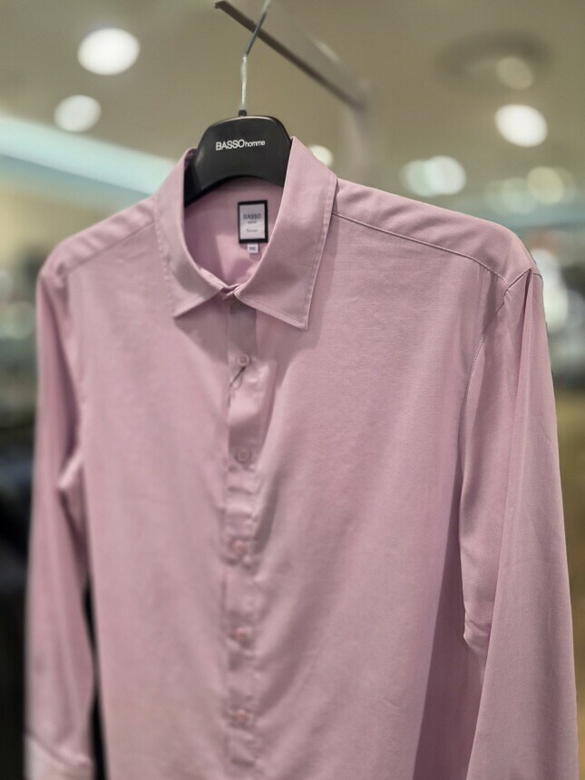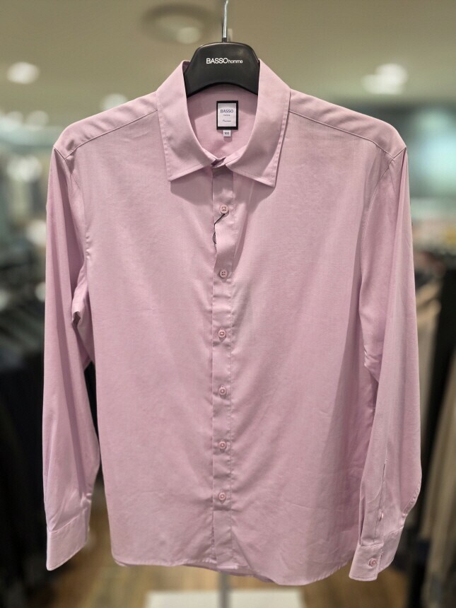 [바쏘옴므] Z1TT88A 25년 핑크 세미오버핏 마혼방 솔리드 캐주얼 셔츠