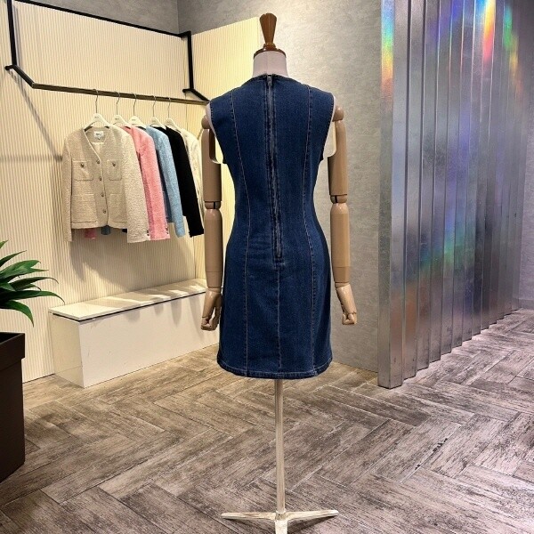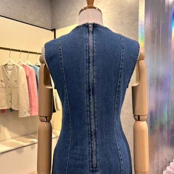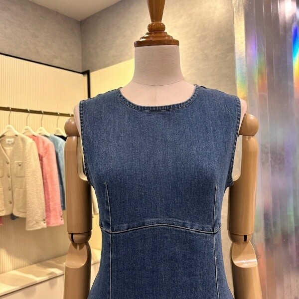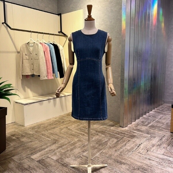 2025년 S/S 신상 데님 라인 민소매 미니 원피스 입니다.