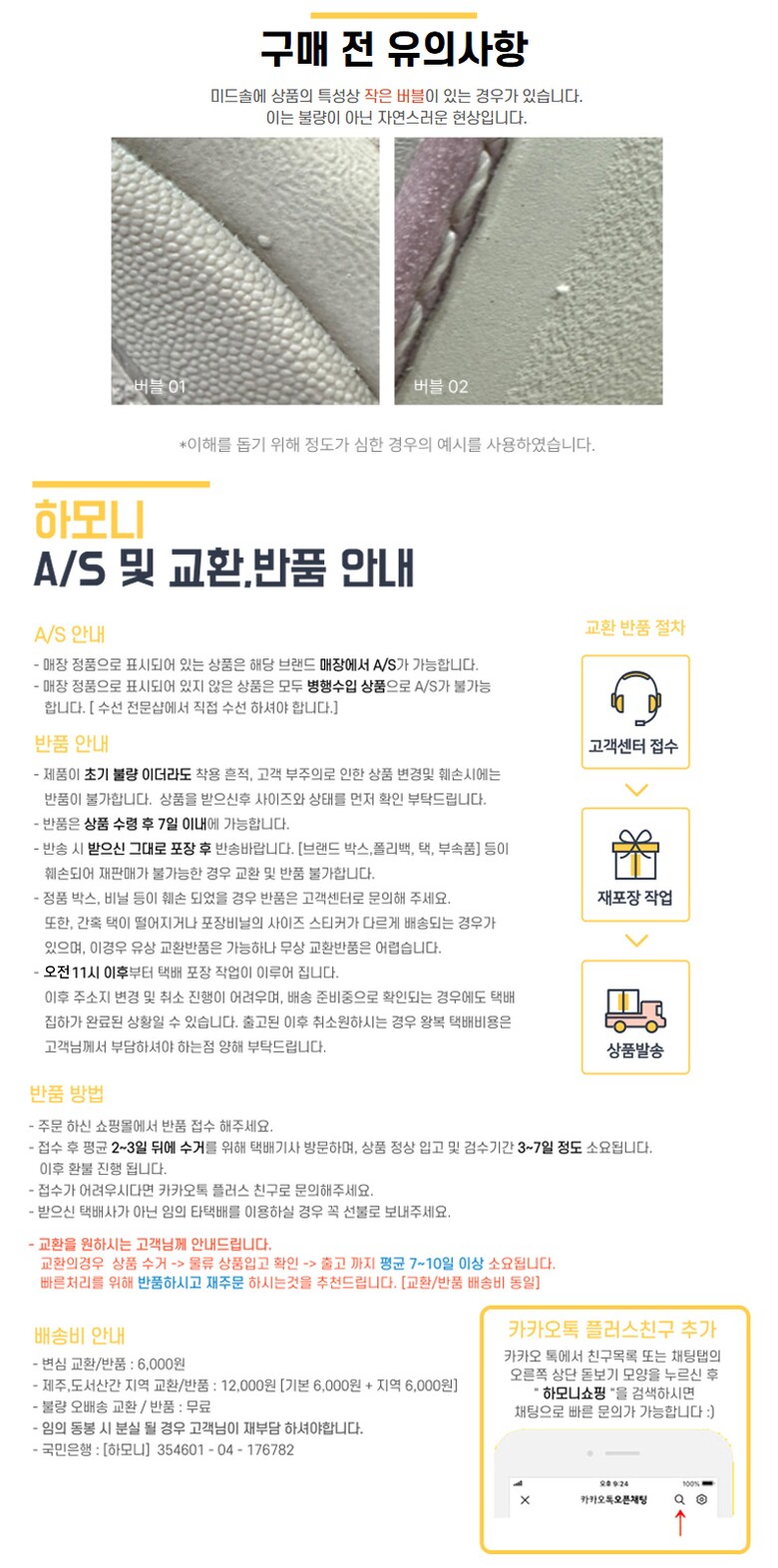 8. A/S 책임자와 전화번호 | 안내 / 010-8074-6996 카카오톡 / 하모니쇼핑 |