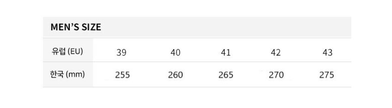 사이즈 : 255(39),260(40),265(41),270(42),275(43)