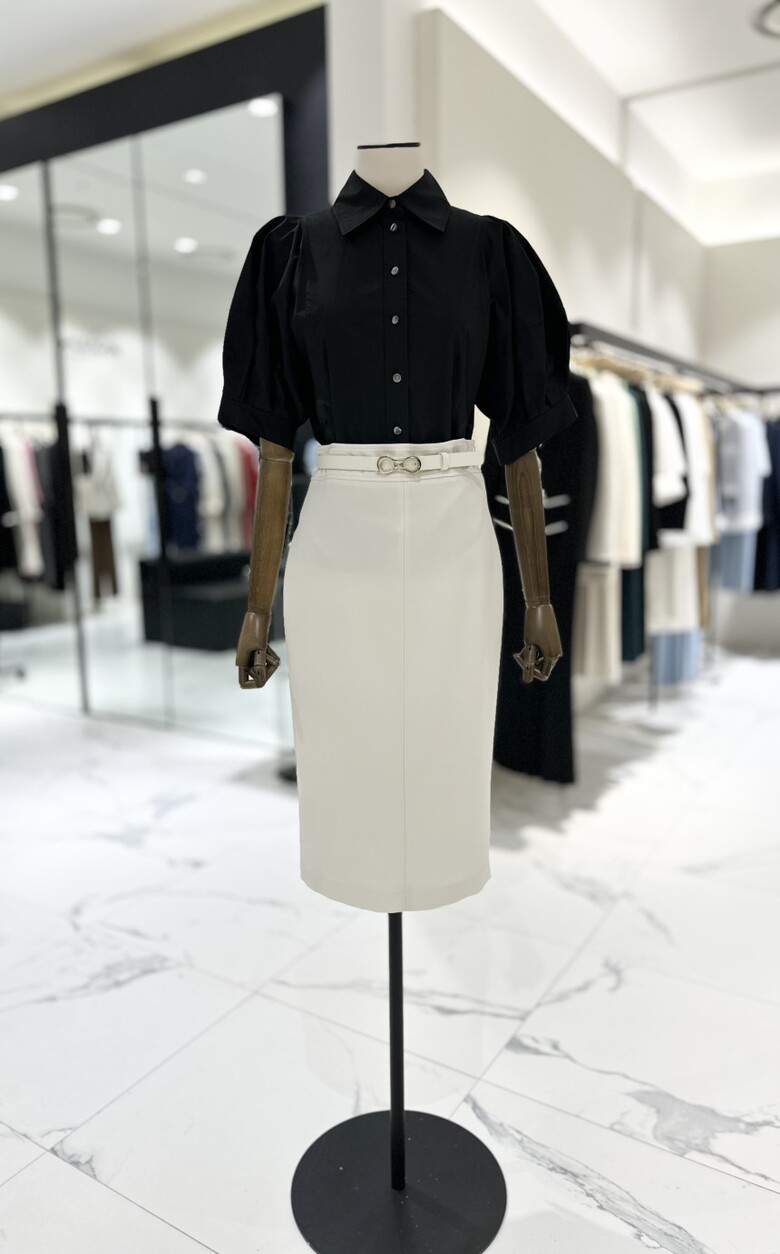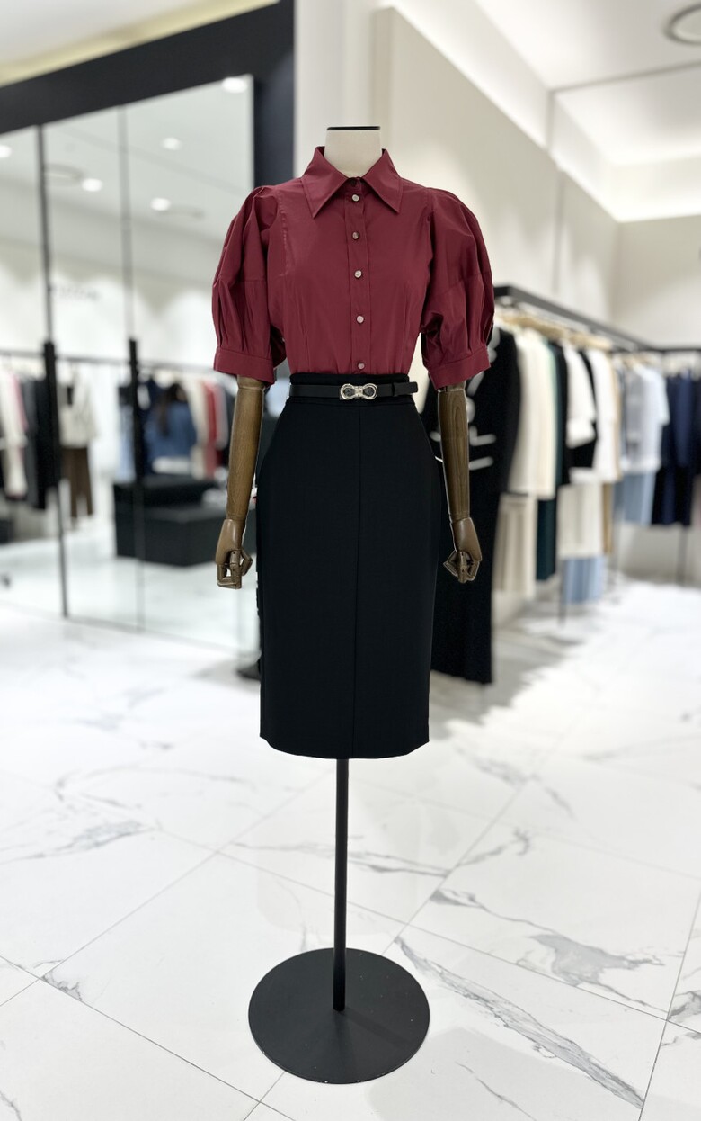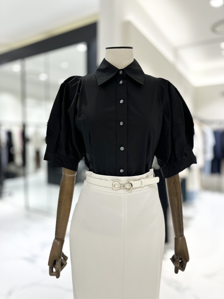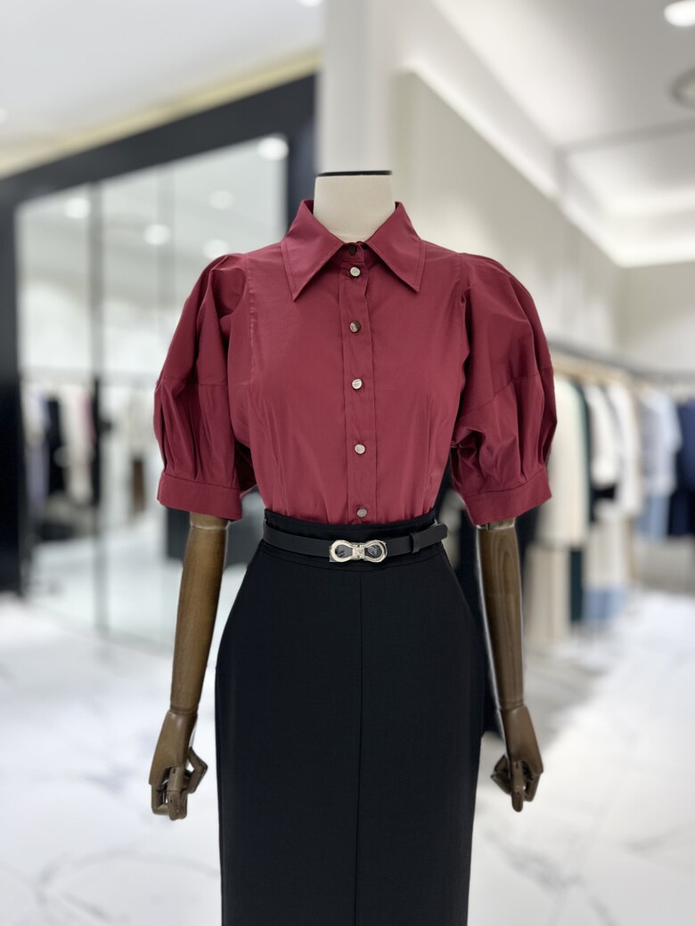 모조에스핀 스탠 카라 볼륨 소매 블라우스 [J242MSC023]
