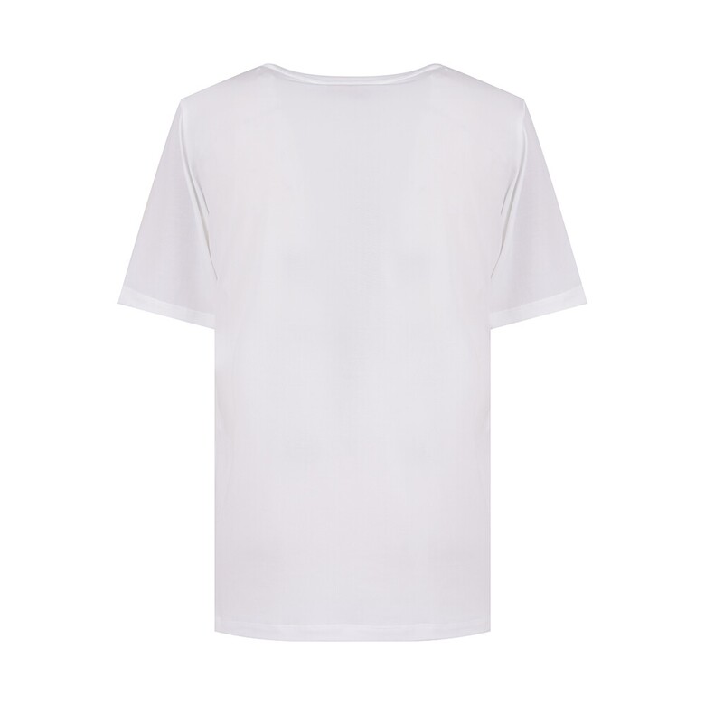 ITY소재를 사용하여 시원하며 플라워 원포인트 프린트가 포인트인 기본 라운드넥 티셔츠