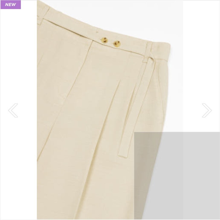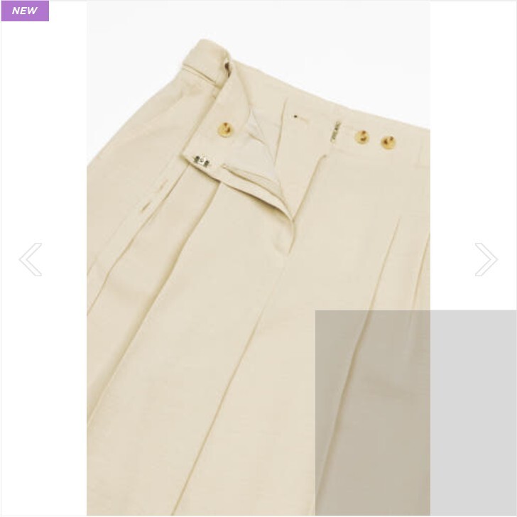 웨이스트 라인에 버튼 클로징으로 포인트를 준 슬랙스입니다.