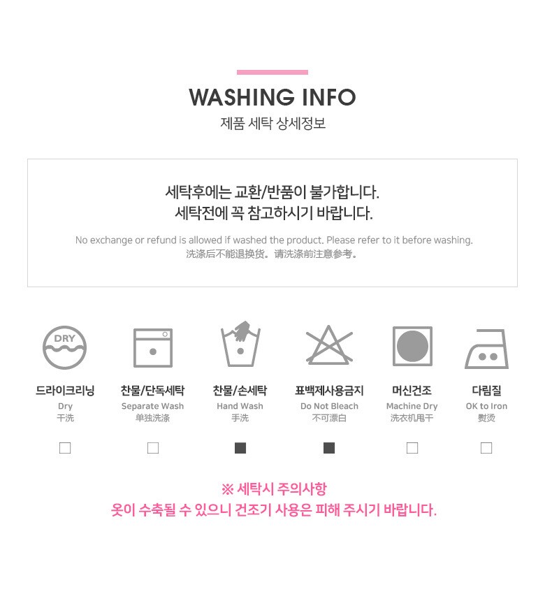 | 6. 세탁방법 및 취급시 주의사항 | 별도표시 |