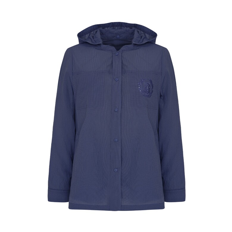 가벼운 나일론 소재를 사용한 후드 탈부착형 점퍼. 뒤 스트로우 기능을 넣어 다양한 실루엣 연출이 가능하고 앞 자수 포인트로 데일리하게 입기 용이한 아이템.