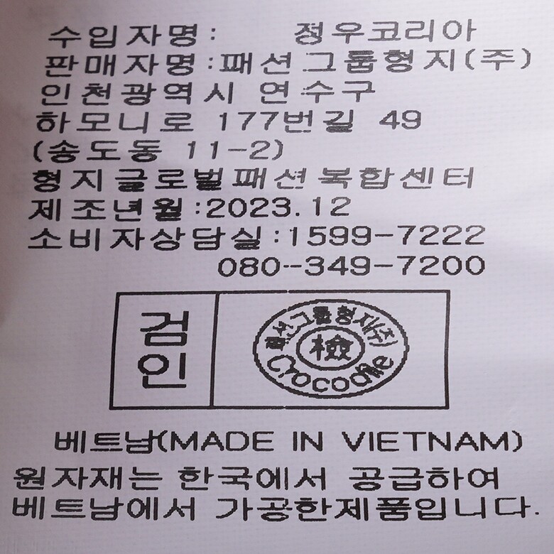 | 1. 제품 소재 (섬유의 조성 또는 혼용률을 백분율로 표시, 기능성인 경우 성적서 또는 허가서) | 상품상세참조 |