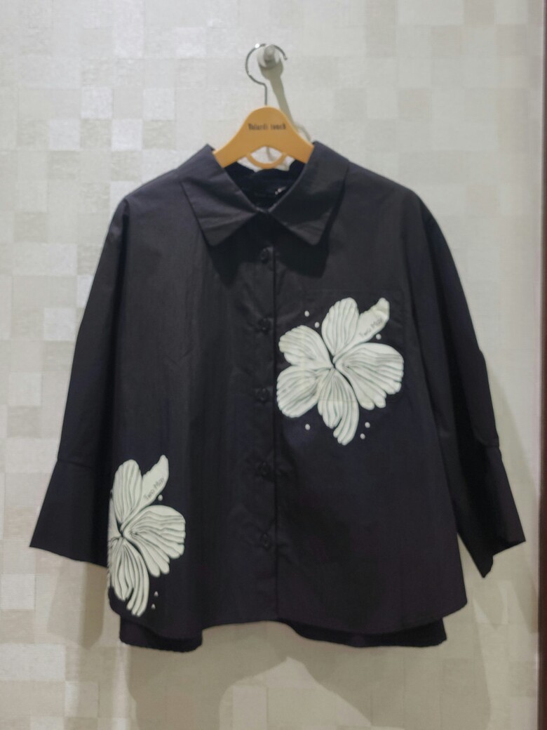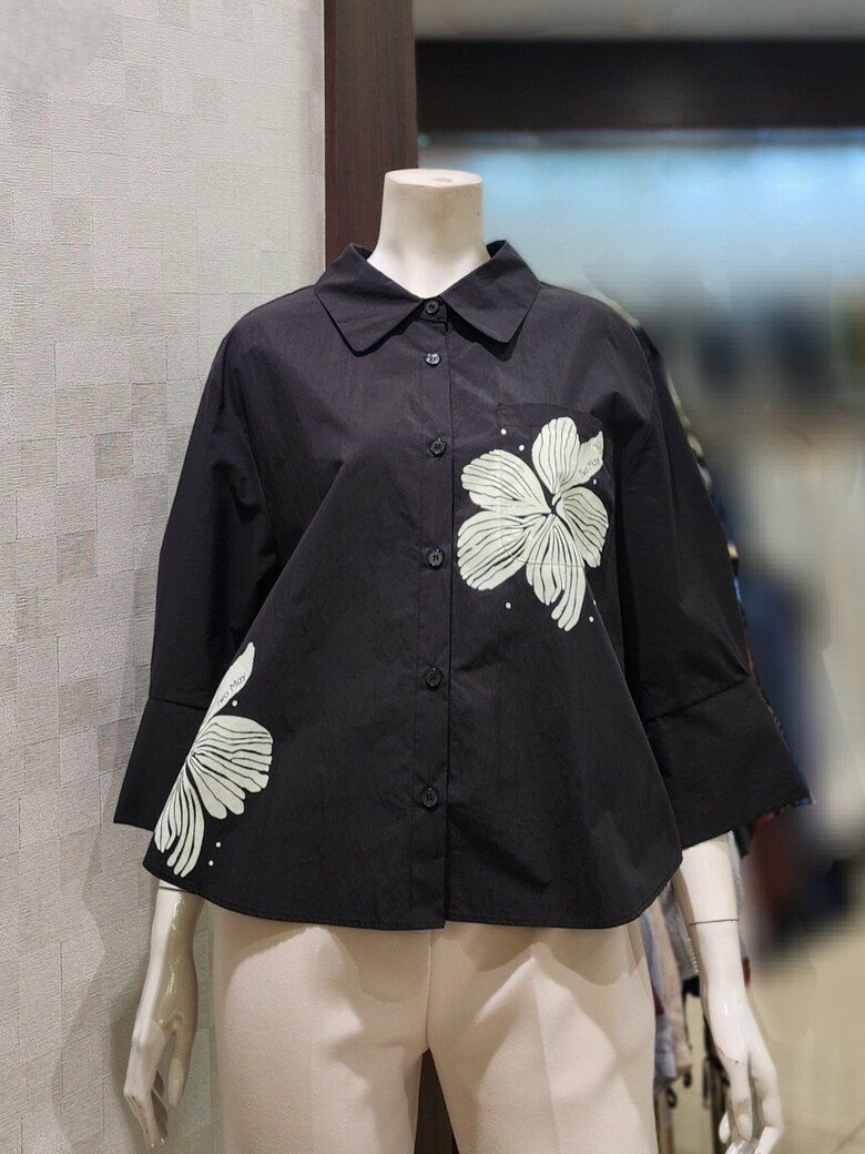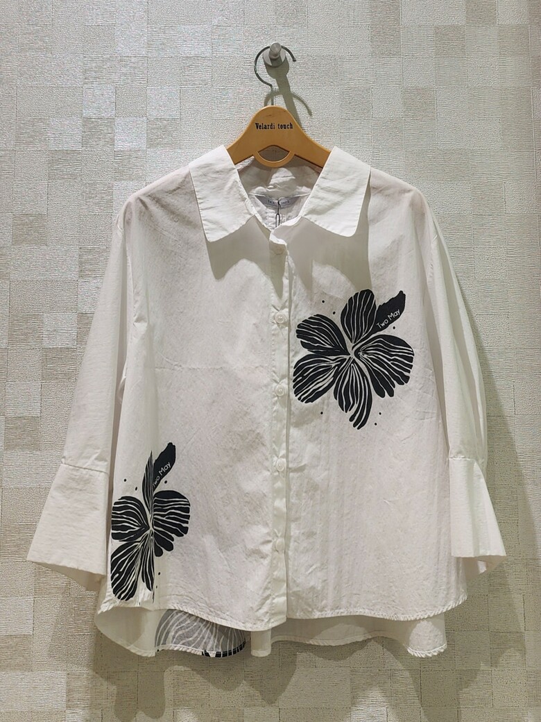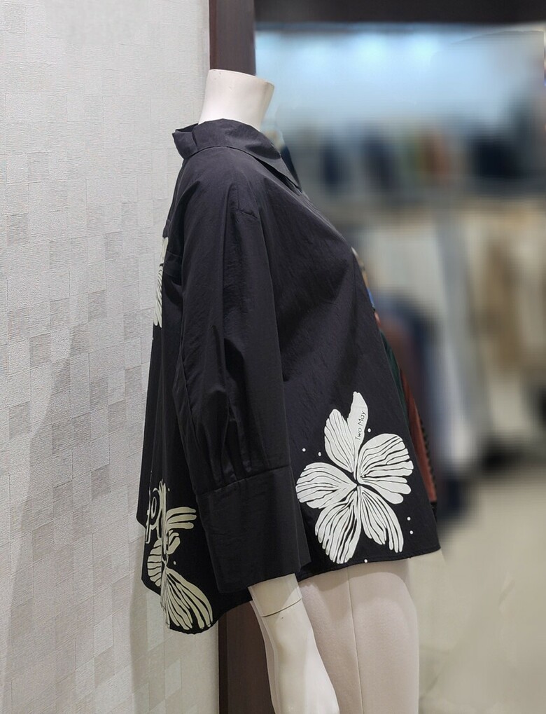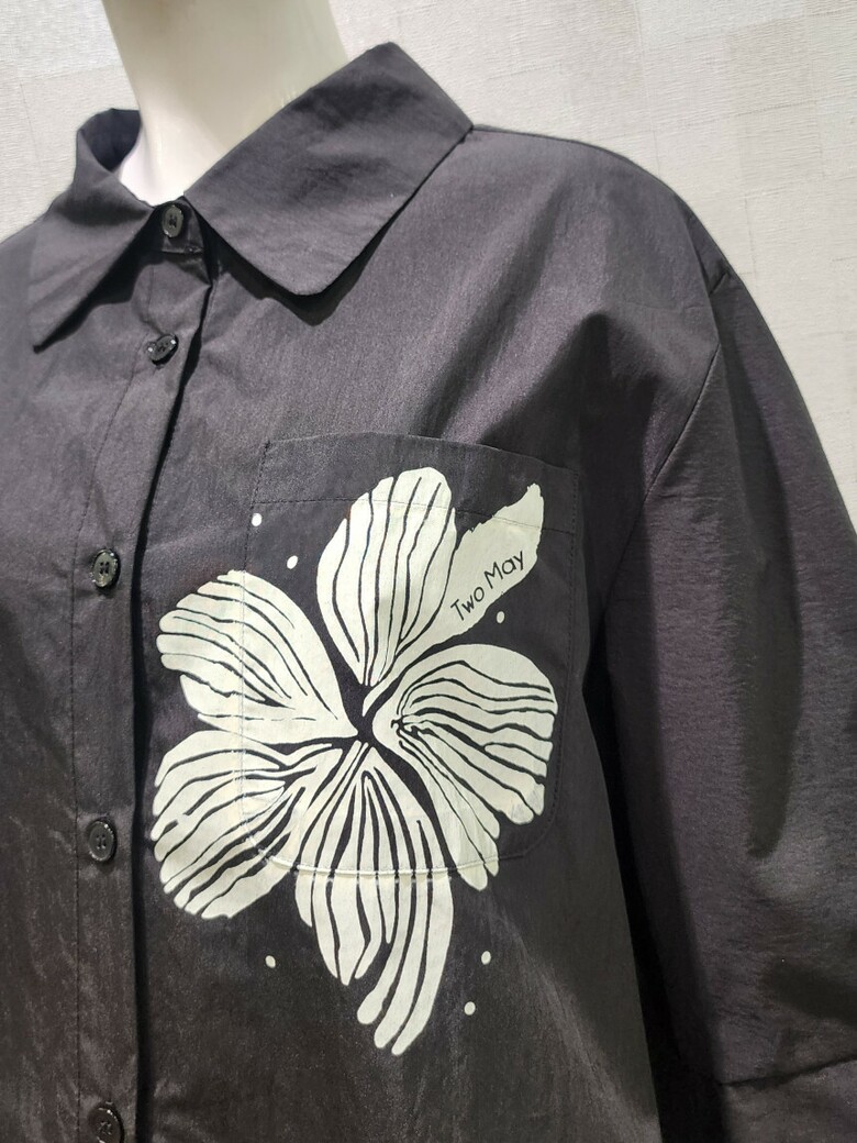 [벨라디터치] V1E2BL48 루즈핏 플라워 숏셔츠