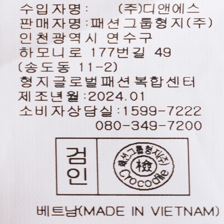 | 1. 제품 소재 (섬유의 조성 또는 혼용률을 백분율로 표시, 기능성인 경우 성적서 또는 허가서) | 상품상세참조 |
