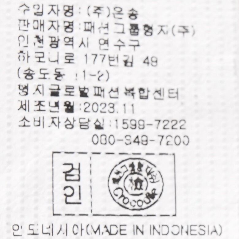 | 6. 세탁방법 및 취급시 주의사항 | 상품상세참조 |