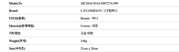 CP컴퍼니 18CMAC016A 000727A 999 고글 코튼 비니
