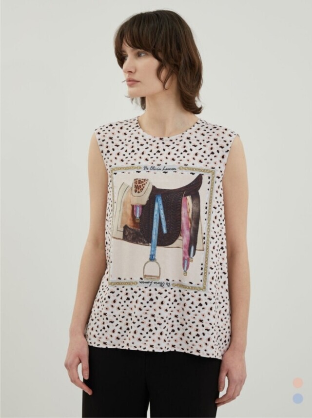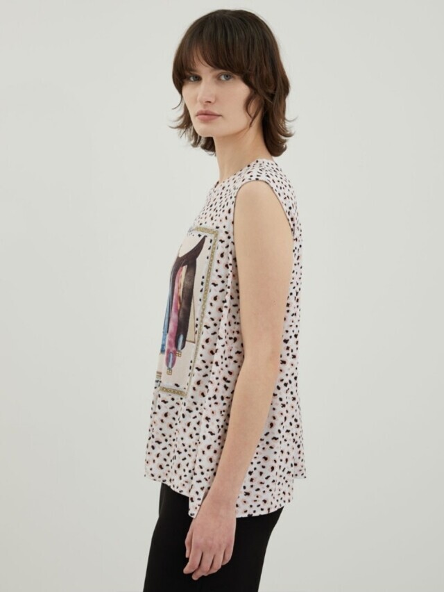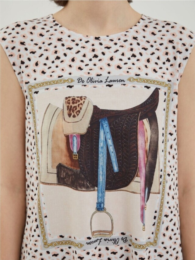 [올리비아로렌]호피 프린트 민소매 티셔츠VOCAN4M4441