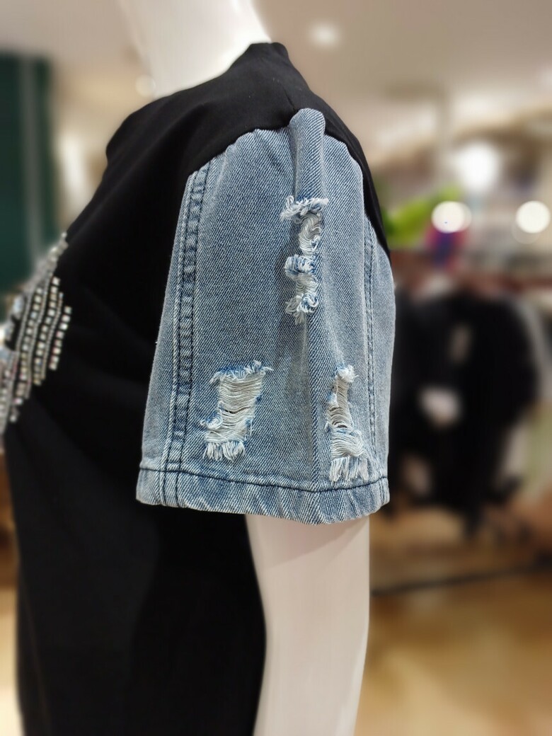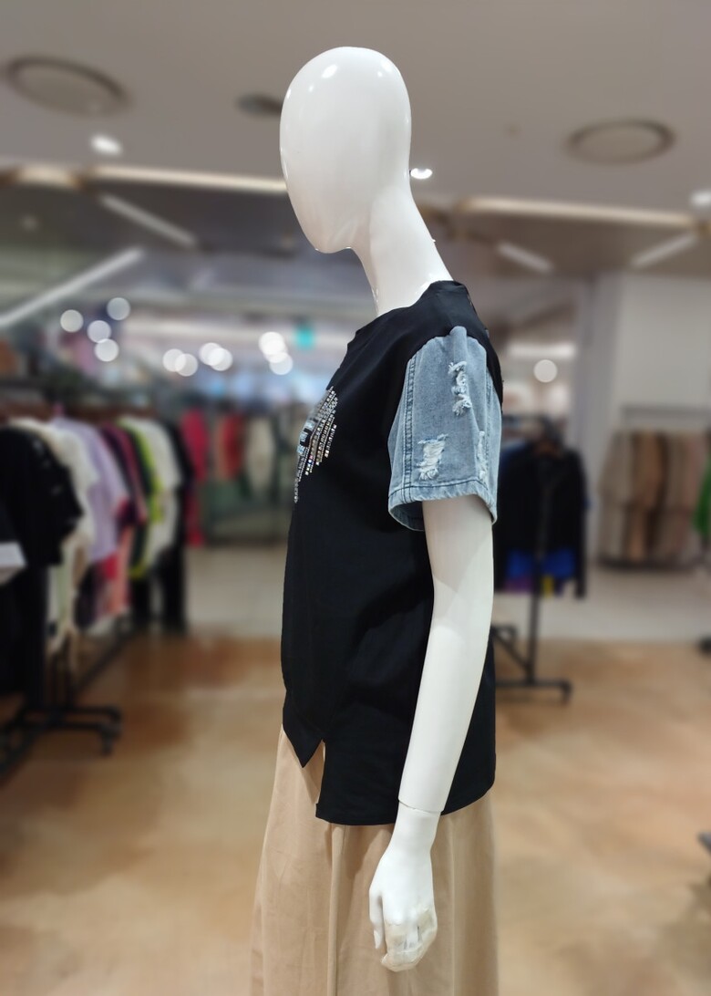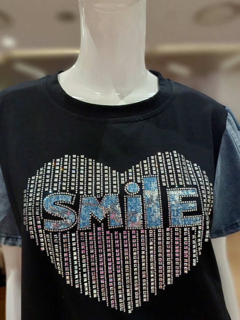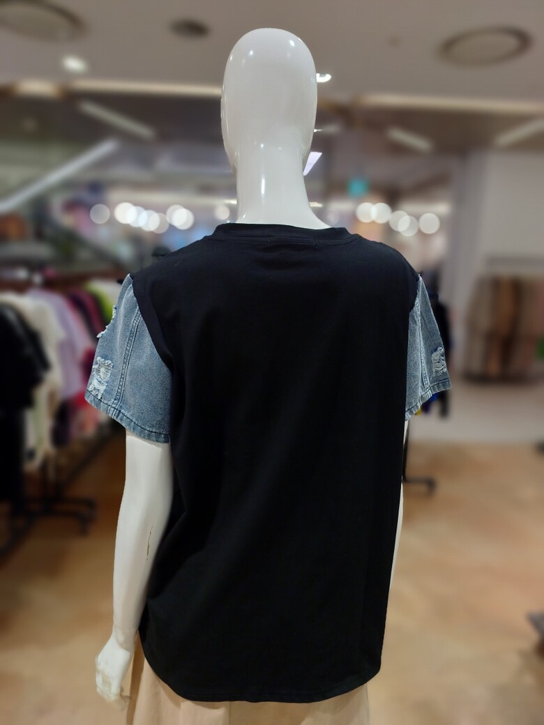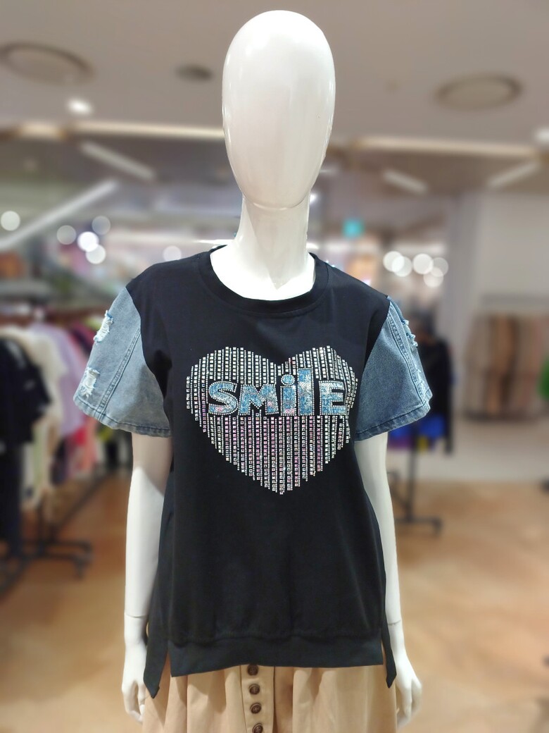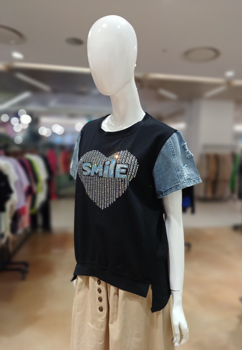 르니앤맥코이 스마일 하트 데님소매 라운드넥 티셔츠MM05TS707