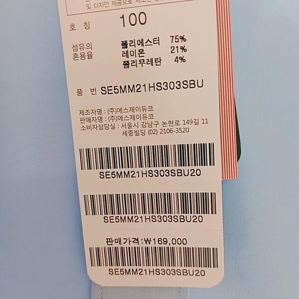 제품소재 : 폴리에스터75%레이온21%폴리우레탄4%