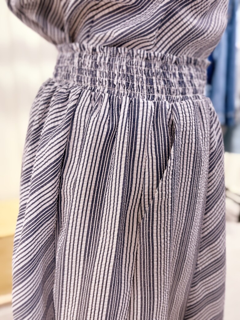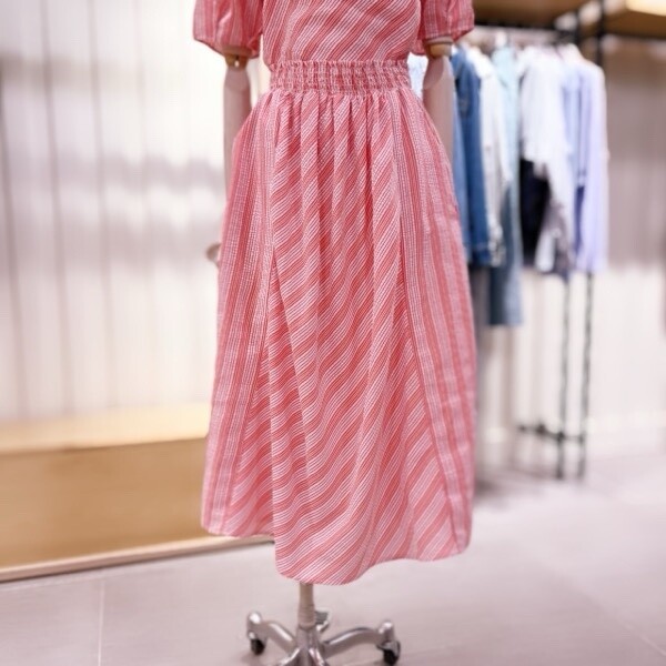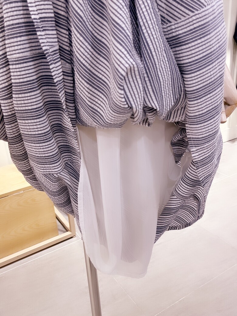 스트라이프 패턴으로 세련되게 연출하기 좋습니다. 롱한 기장감에, 시원한 쉬폰소재의 안감도 있습니다.