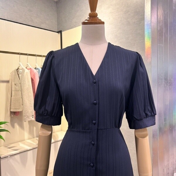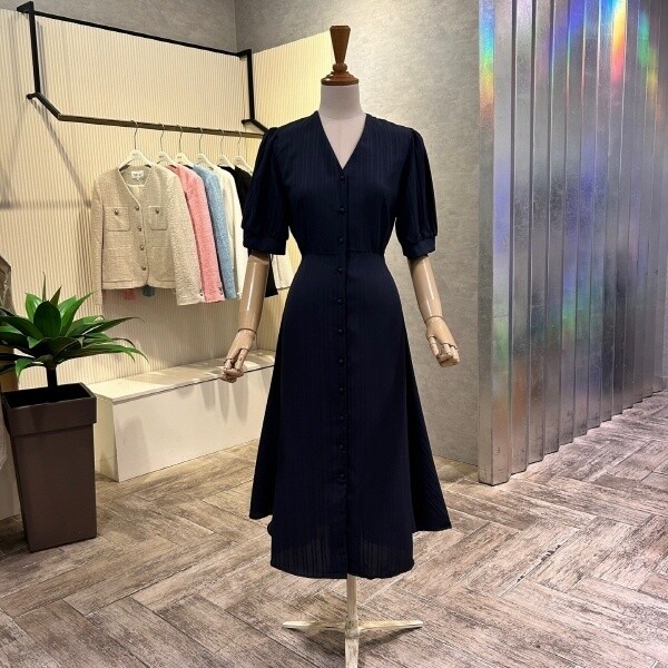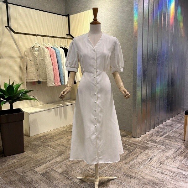 2025년 S/S 신상 콩 단추 V넥 롱 원피스?입니다. 여성스러운 원피스로 포인트 아이템 입니다.?