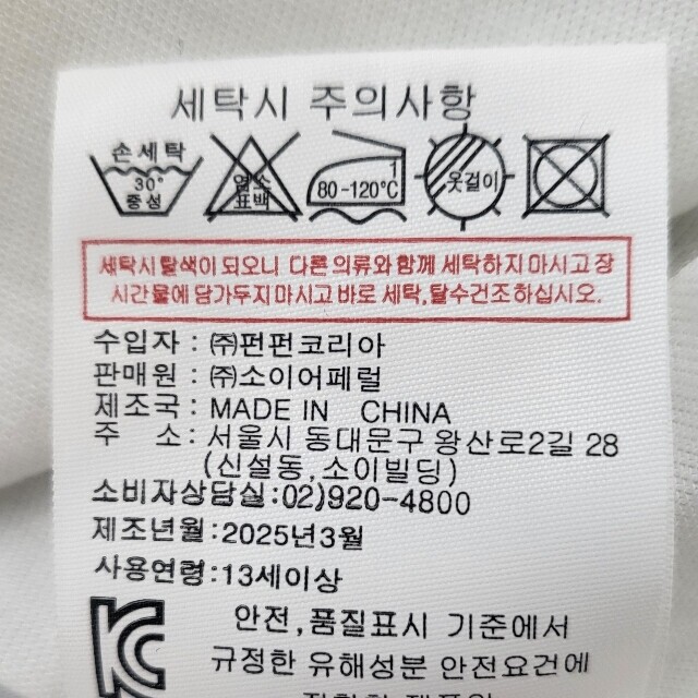 | 1. 제품 소재 (섬유의 조성 또는 혼용률을 백분율로 표시, 기능성인 경우 성적서 또는 허가서) | 상품상세참조 |