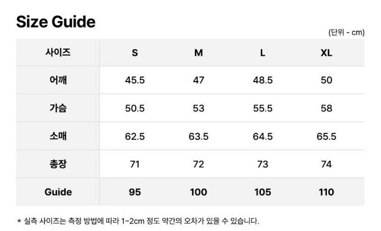 · 핏감 : □ 루즈 ■ 표준 □ 슬림