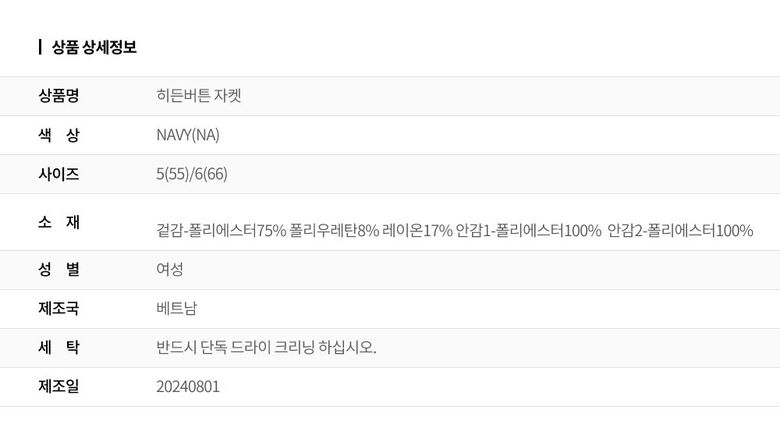 | 6. 세탁방법 및 취급시 주의사항 | 상세페이지 참조 |