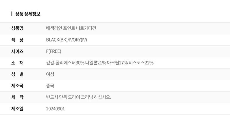 | 6. 세탁방법 및 취급시 주의사항 | 상세페이지 참조 |