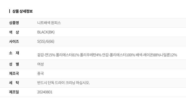 | 6. 세탁방법 및 취급시 주의사항 | 상세페이지 참조 |