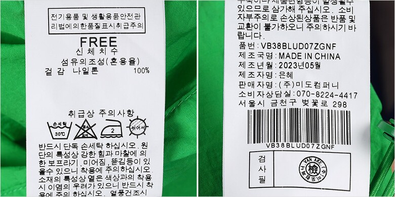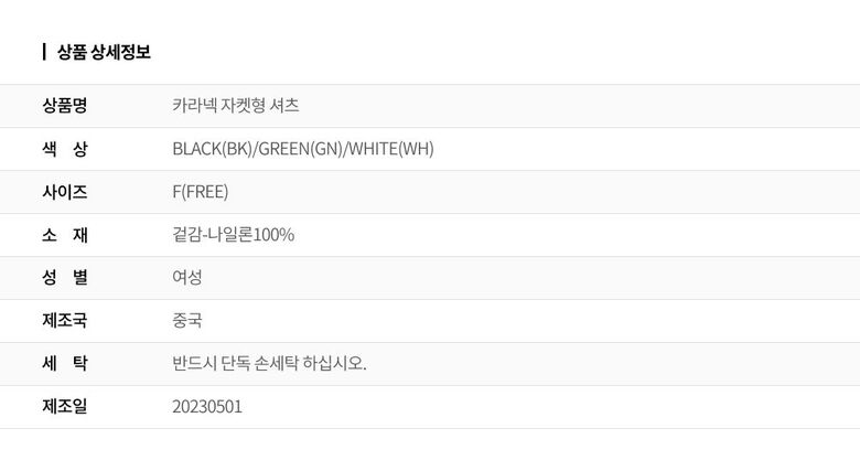 | 6. 세탁방법 및 취급시 주의사항 | 상세페이지 참조 |