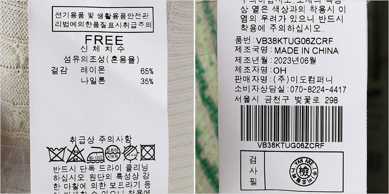 | 6. 세탁방법 및 취급시 주의사항 | 상세페이지 참조 |