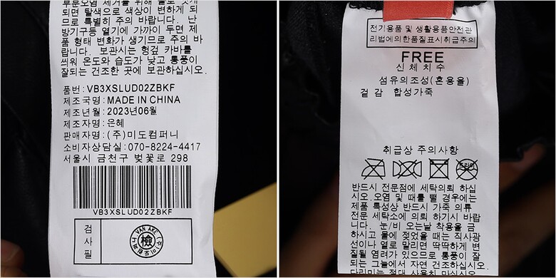 | 6. 세탁방법 및 취급시 주의사항 | 상세페이지 참조 |