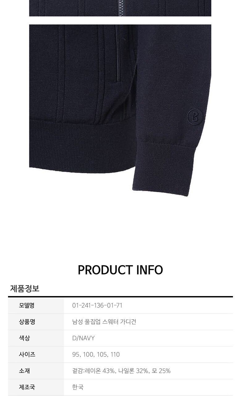 [보그너] 남성 풀집업 스웨터 가디건 D/NAVY