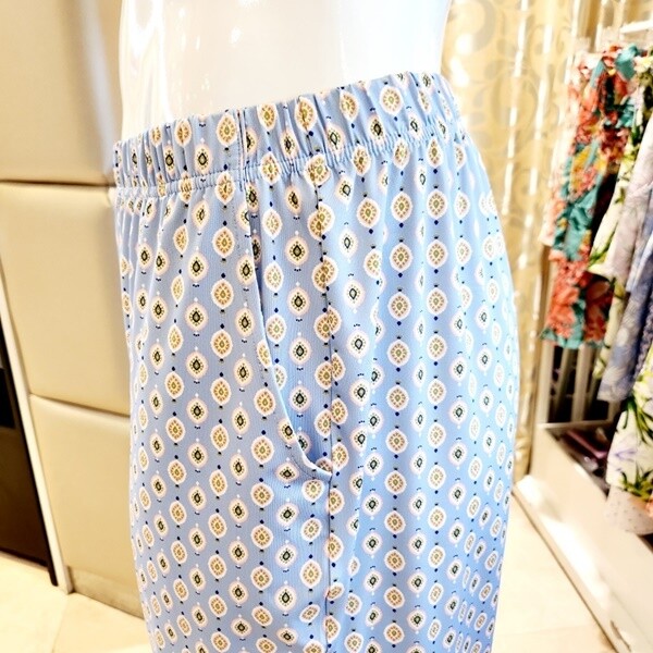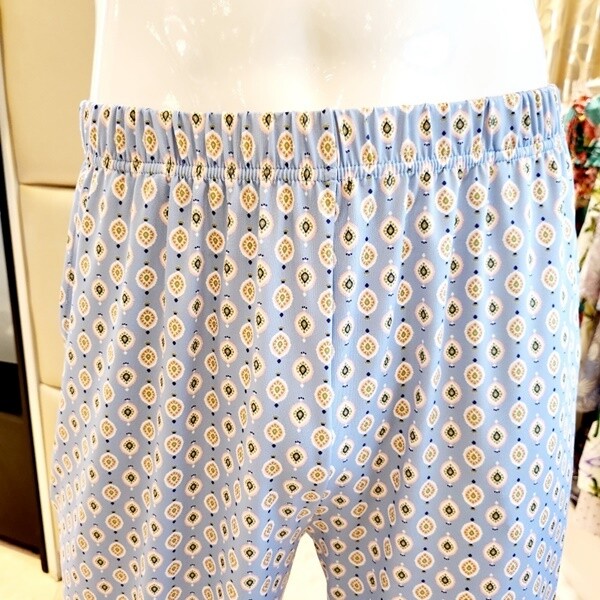 시원한 컬러감의 에스닉 나염 폴리스판 반바지입니다. 가벼운 소재감으로 몸에 닿는 감촉이 부드럽고 구김이 없어 관리하기 편리합니다. 다양한 제품과 코디하기 좋습니다.