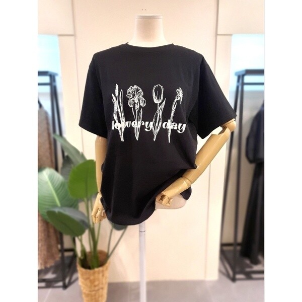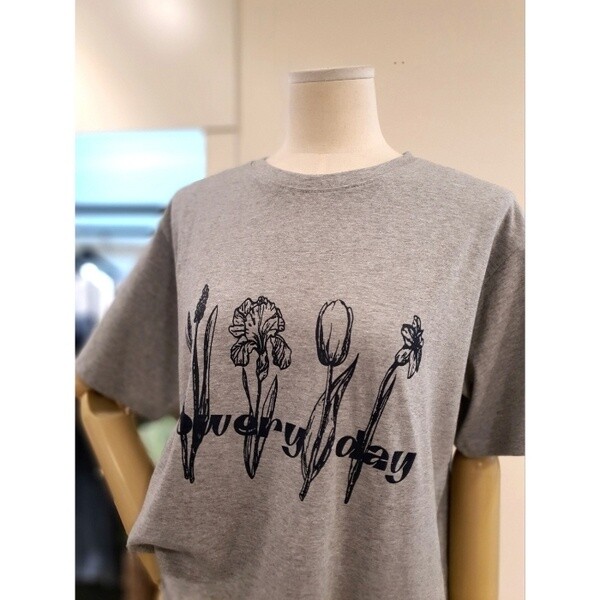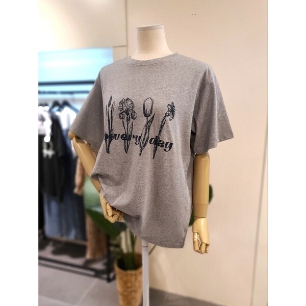 KETSP501GR_플로럴 반팔 티셔츠 그레이