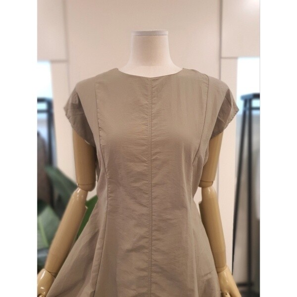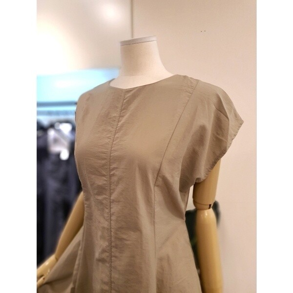 파임없는 라운드넥에 밑단으로 퍼지는 핏으로 체형보안에도 좋습니다.