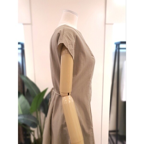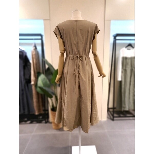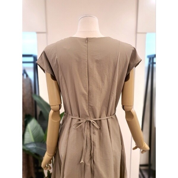 KEOPP503BE_바스락 드랍소매 스트링 원피스 베이지