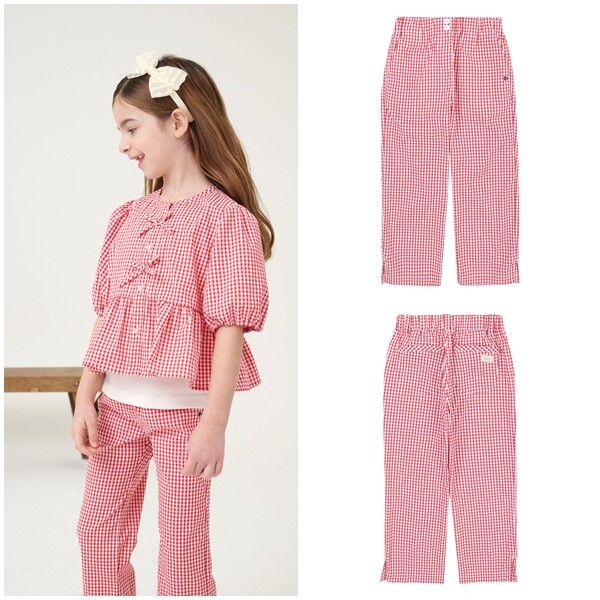 BZ22PT02RD_레드 고방체크 일자 팬츠