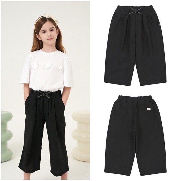 BZ22PT04BK_블랙 주름 와이드 팬츠