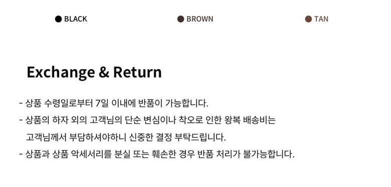 • 처음 배송된 상품상태와 다를 경우(세탁/착용 후 외출하신 경우) 반품이 불가합니다.