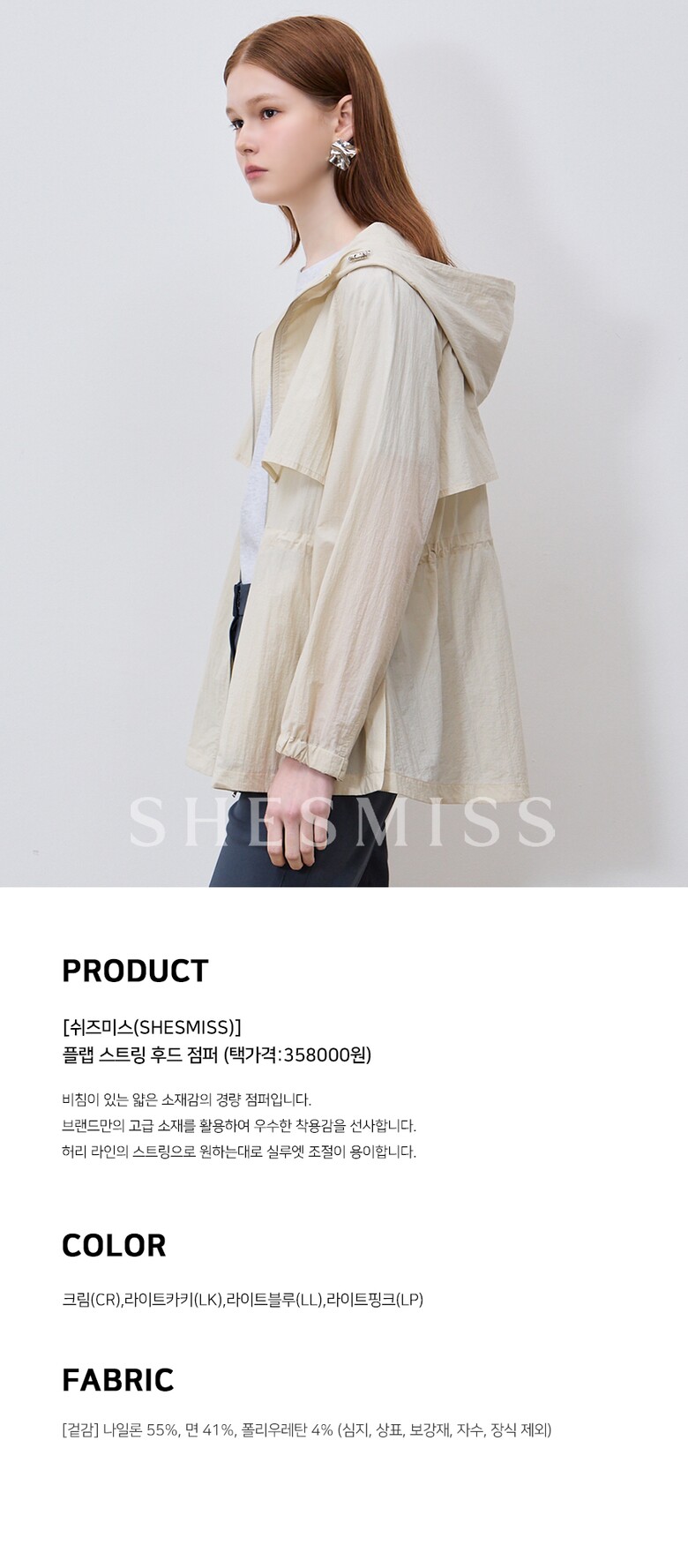 [쉬즈미스(SHESMISS)] 고품격썸머 플랩 스트링 후드 점퍼 (택가격: 358000원)