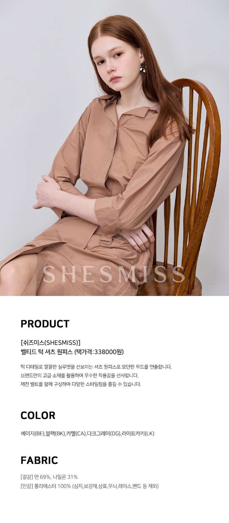 [쉬즈미스(SHESMISS)] 고급스러운 벨티드 턱 셔츠 원피스 (택가격: 338000원)